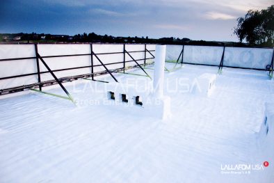 Na większości dachów płaskich lub o lekkim nachyleniu, występują często obszary wody stojącej. Porównując powłoki akryliczne do SealCote 1000 ogromną różnicę stanowi fakt iż silikonowy system dachowy nie ulega procesowi emulgacji (rozkładowi w emulsję) w kontakcie ze stojącą wodą. Adhezja do podłoża dachu pozostaje nienaruszona a biały lub szary silikon staje się odblaskową powłoką anty UV – kluczowe w dniach nadmiernego nasłonecznienia.